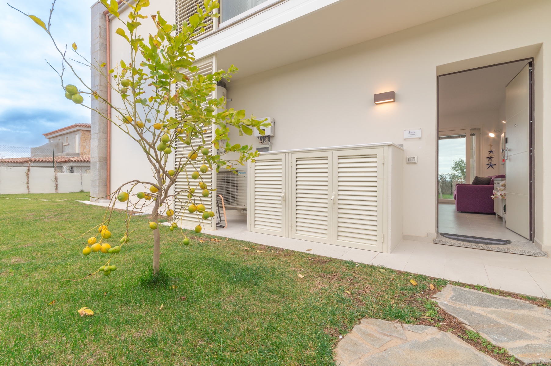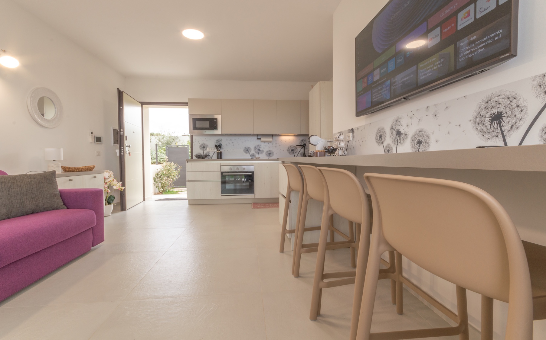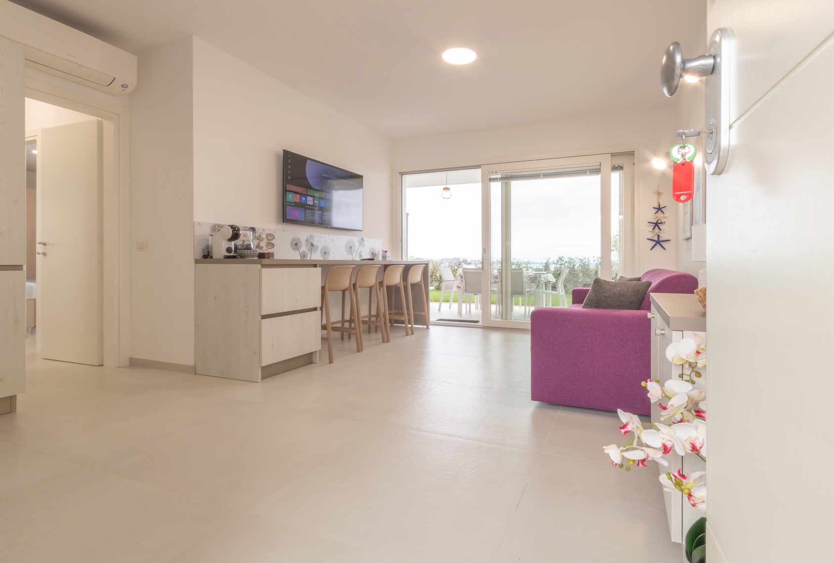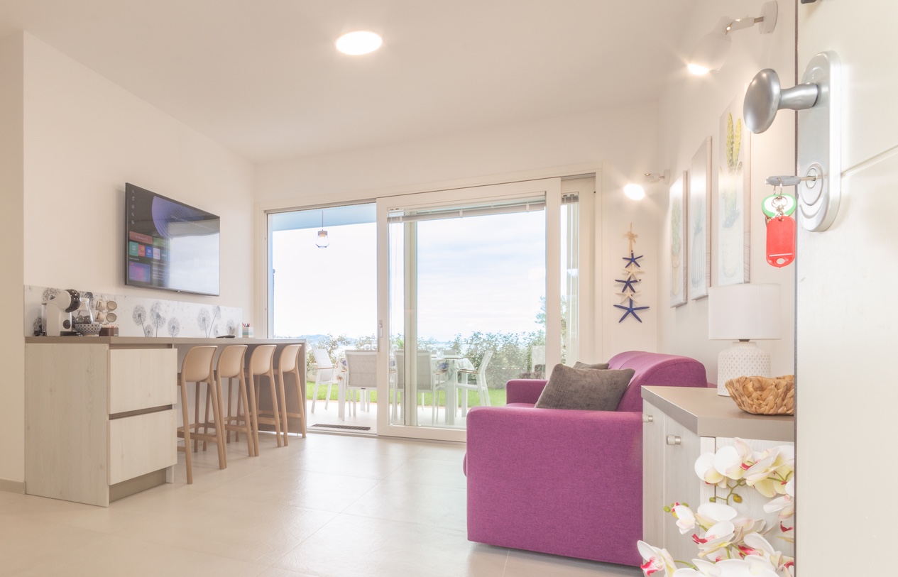 Al piano terra, Acquamarina è un appartamento elegante e confortevole, pensato per chi ama vivere la natura e il mare a portata di mano.